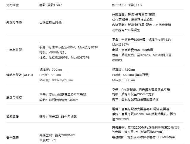 现款SU7自2024年3月上市以来,已累计交付超过36万辆。截至2025年10月,SU7仍能以月销近1.5万辆的成绩,超越特斯拉Model 3,显示了其持续的市场吸引力。而小米汽车为2026年设定了55万辆的销量目标,相比2025年41万辆的销量,这一目标需要实现34%的增长,新一代SU7无疑是实现这一目标的关键产品之一。