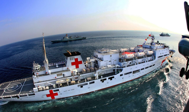 就在这个大棒抡得虎虎生风的节骨眼上,中国的医院船到了...